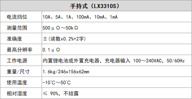 手持式直流电阻测试仪(LX3310S)