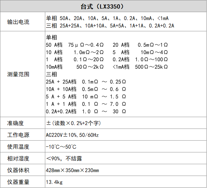 5、最高输出电流50A,测量范围0~25kΩ。